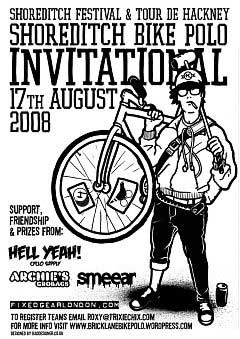 And what better incentive could there be than the chance to win fabulous prizes, the acclamation of your peers and a Moving Target t-shirt? Yes, a polo tournament is happening August 17th. More details at the Brick Lane Bike Polo blog, or email Roxy to register.