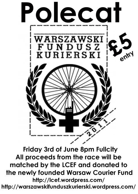 Thanx to everyone who raced and donated for the Warsaw Fund…good night all around…we’ll be taking £25o to Warsaw at the end of July…Thanx to Apryl and Hobs Repro for printing, Scott@Black Rainbow Project for donating one of his awesome pouch as our 1st prize, Sleepy Joe and his dad@ 2 Wheels Good for giving us a wicked bag of goodies..we had 14 racers,results:
