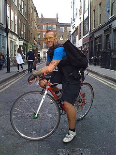 Best thing about being a courier? When the weather is fine and you have one of those days when everything seems to flow. The road opens up before you, gaps in the traffic appear and you feel like your mind exists three seconds in the future whilst the rest of you exists in the moment. Pure bliss.What’s your earliest memory? Falling down the stairs when I was three and hitting my head on a Dimplex heater (which was bizarrely positioned at the bottom of the stairs!). I got to ride in the front seat of my dads car on the way to hospital, which was usually not allowed.